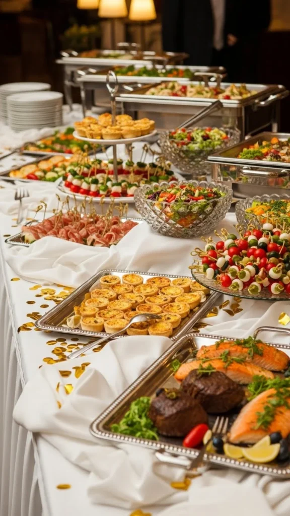 Buffet tables benefit from sparkle too. Place confetti near labels or decor items.