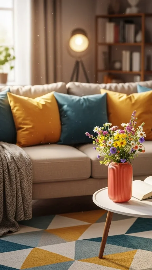 • Pillows & Throws: Layer pillows in complementary colors or patterns. Swap them seasonally for variety.