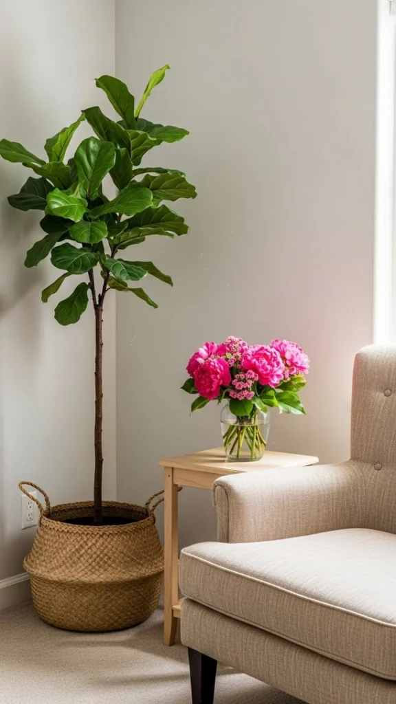 • Indoor Plants: Potted palms, fiddle leaf figs, or succulents bring greenery.