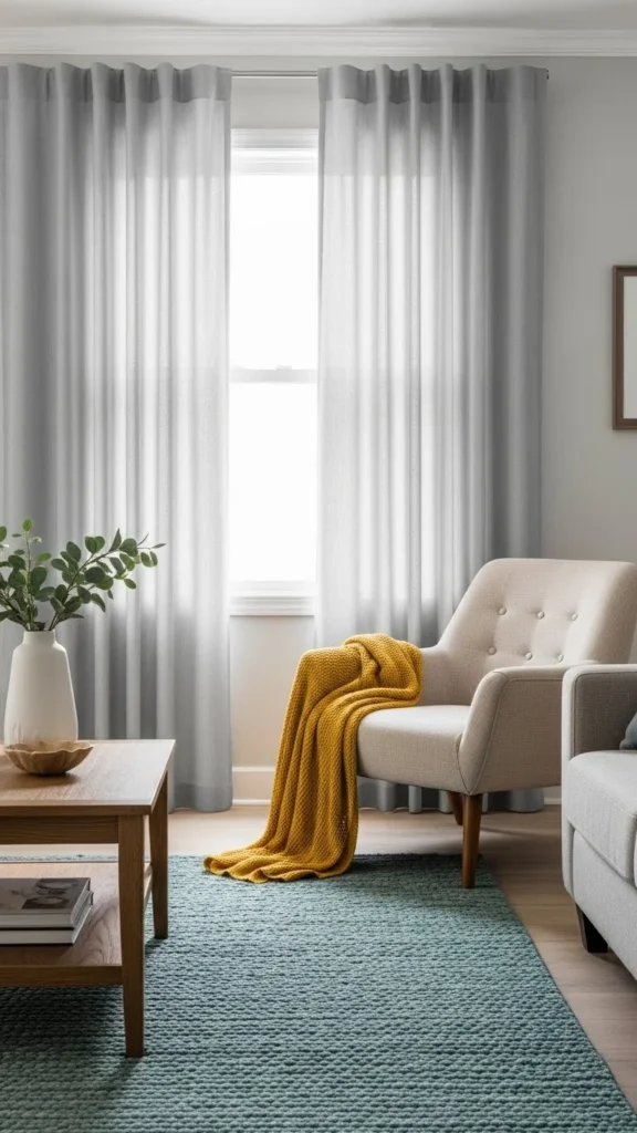 • Swap neutral curtains for ones in soft pastels or bold tones.