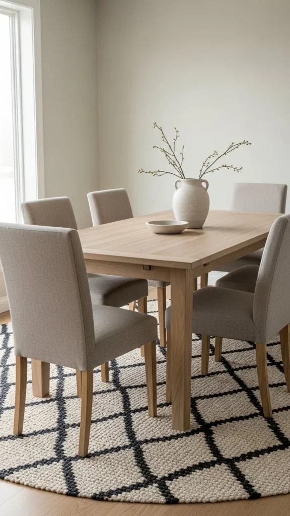 - Choose a rug large enough so chairs stay on it even when pulled out.
