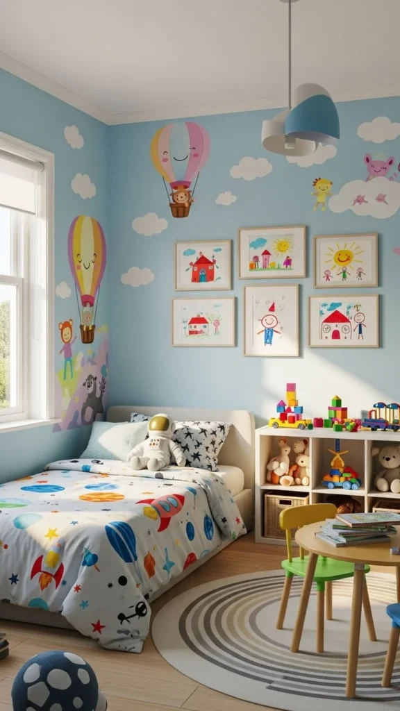 This is where the room really becomes theirs. Fun decor encourages creativity and self-expression without overwhelming the space.