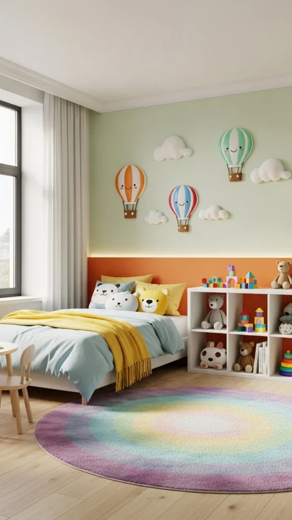 This keeps the room feeling cheerful without overstimulating your child.