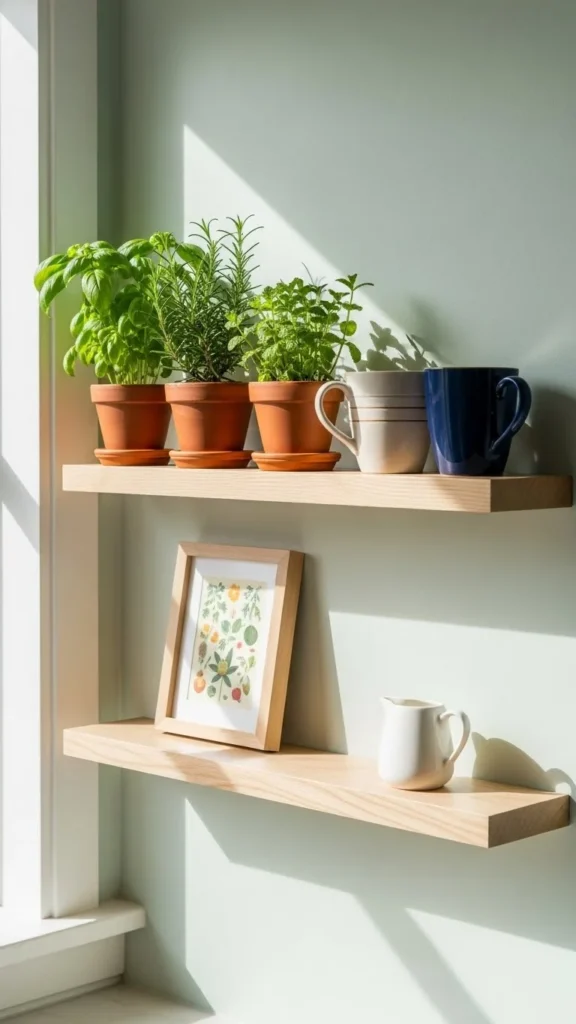 Floating shelves are perfect for small walls—they add storage and decor space without taking up floor area.