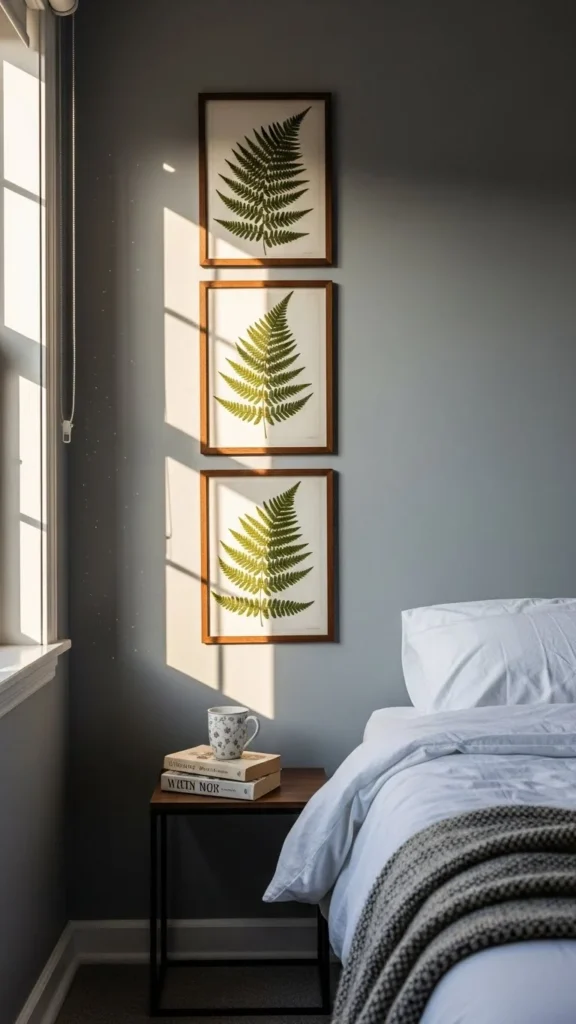 Small walls can feel cramped if everything is horizontal. Think tall, slim, and stacked.