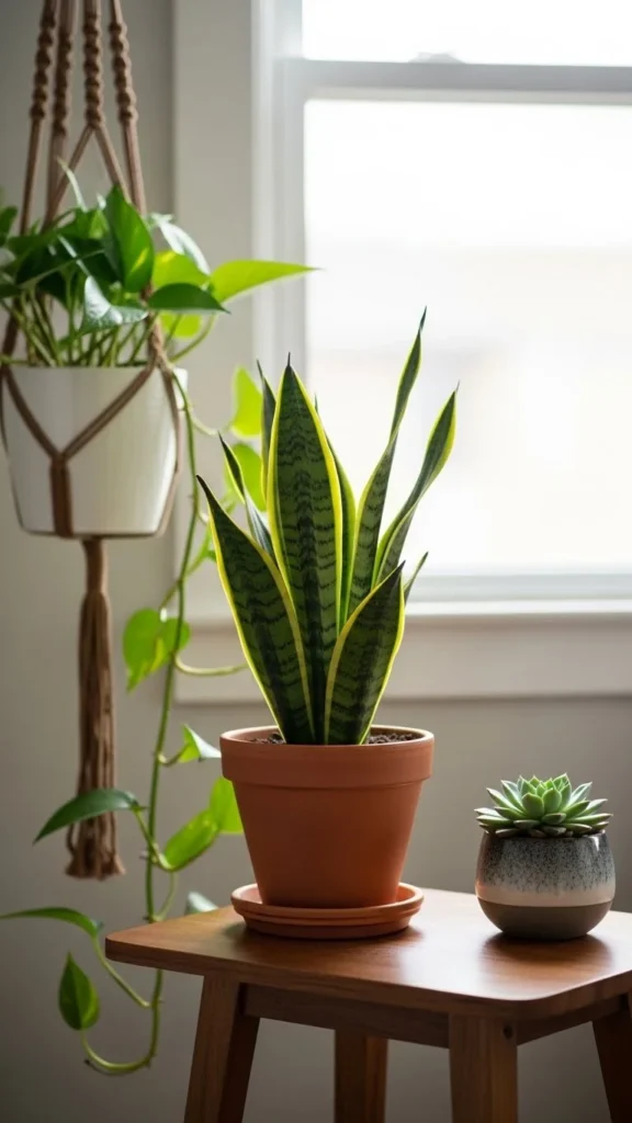 Don’t forget vertical space! Hanging plants and wall-mounted planters add greenery without taking up floor space.