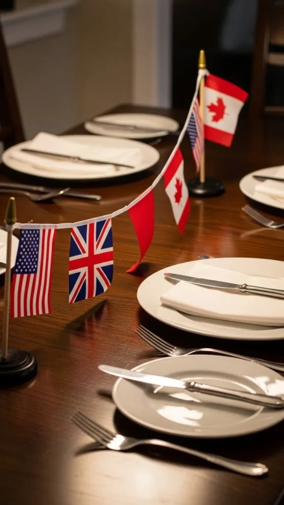 Mini bunting works well for indoor tables. String small triangles together and place them along the center. This avoids tall centerpieces that block conversation. Scrap fabric works perfectly here, keeping costs low.