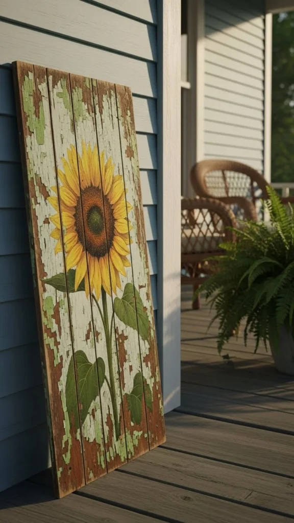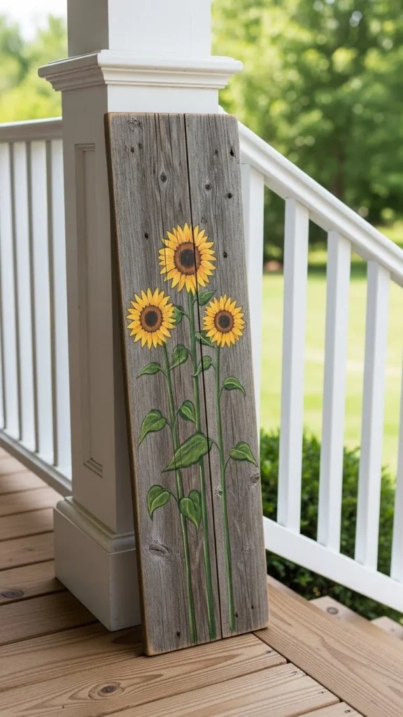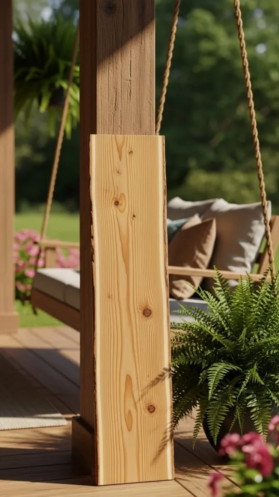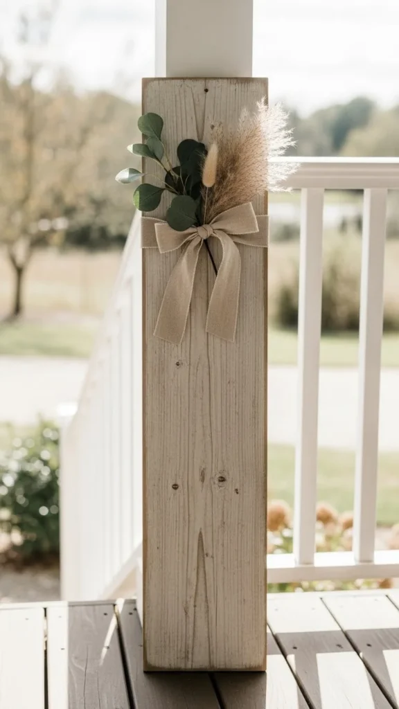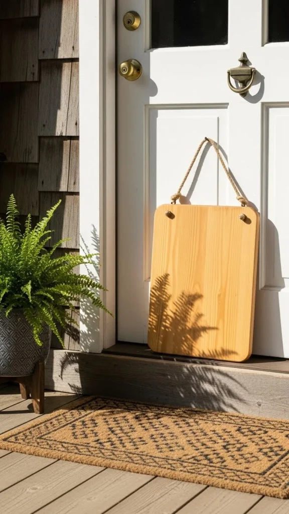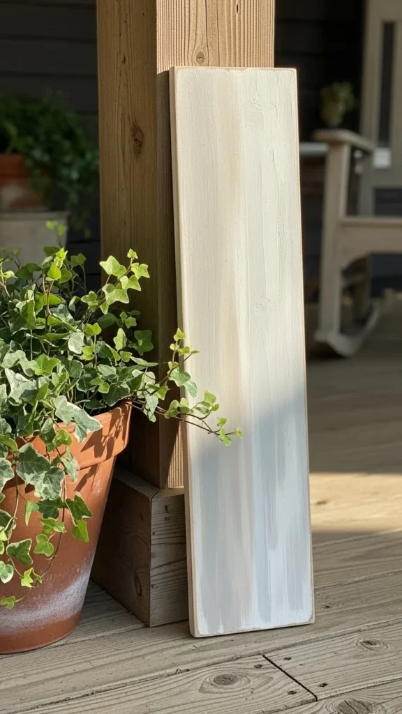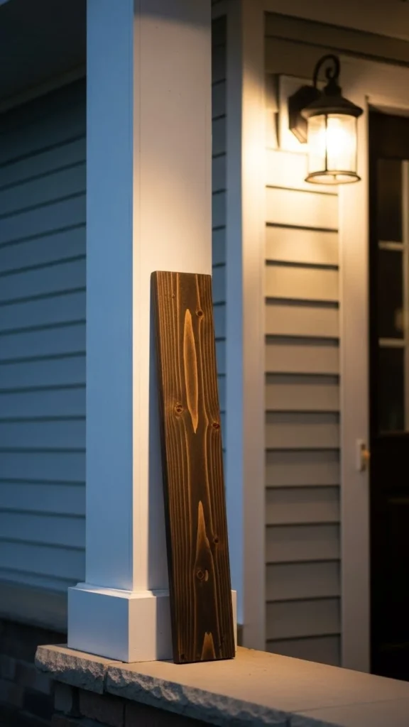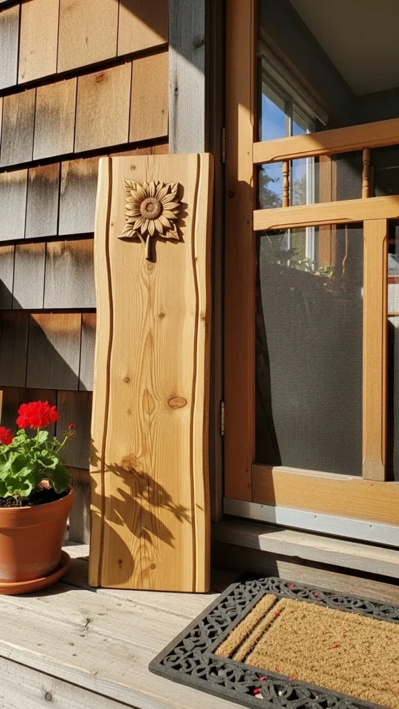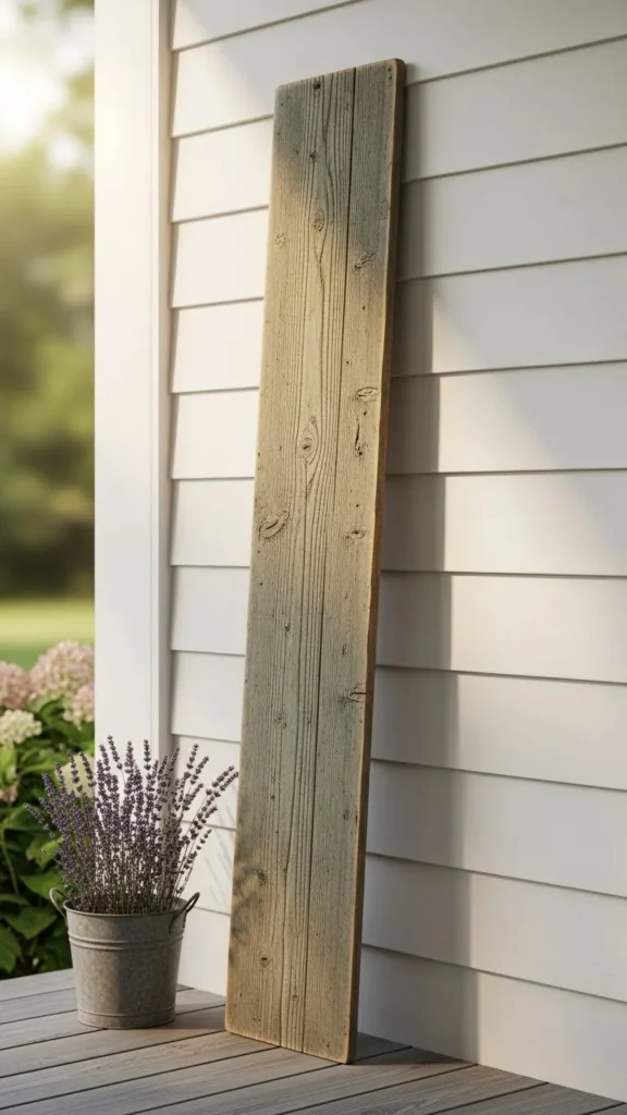 A tall vertical board feels familiar and calm. It works because the shape mirrors door frames and porch posts. You don’t need custom work. Fence boards or leftover lumber can do the job. Sand lightly and keep the wood raw for a relaxed look.