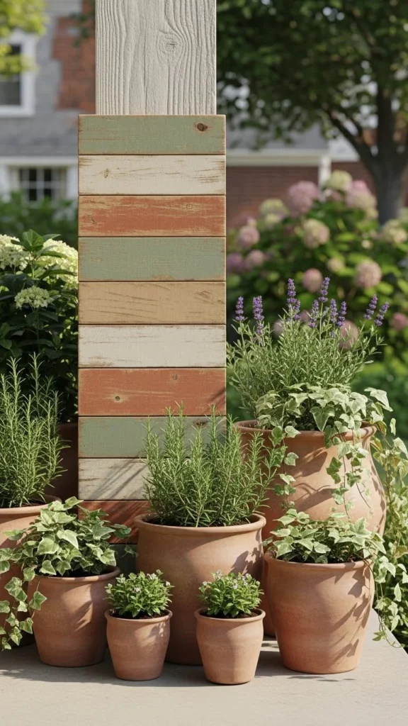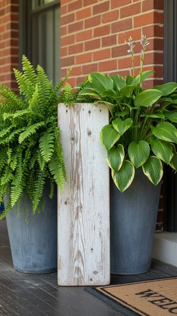 This style pairs well with lanterns or a small stool. Keep spacing loose so the porch doesn’t feel crowded. Even on small porches, a vertical board adds height without taking floor space.