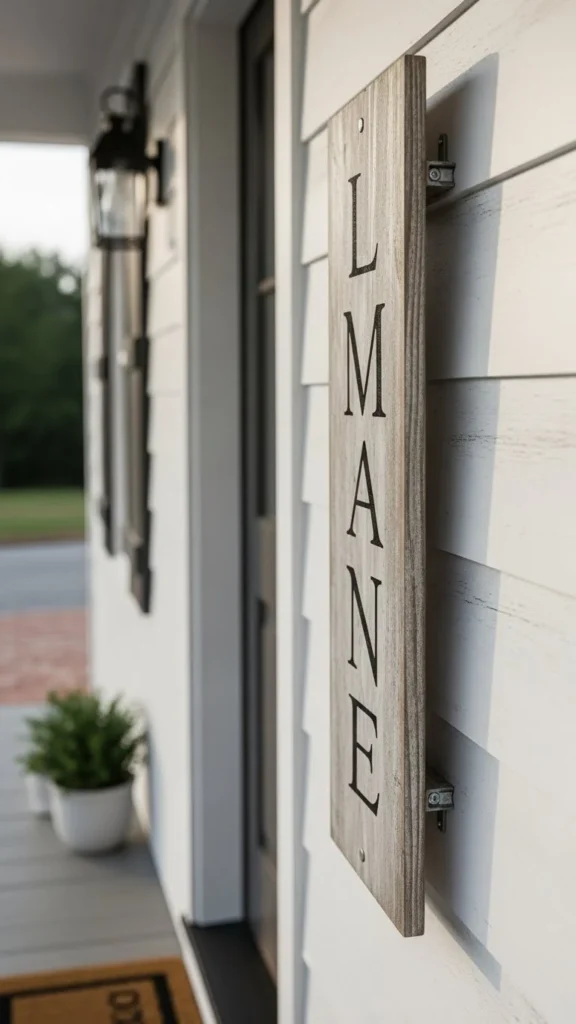 A slim sign fits small porches. It feels neat rather than bulky.