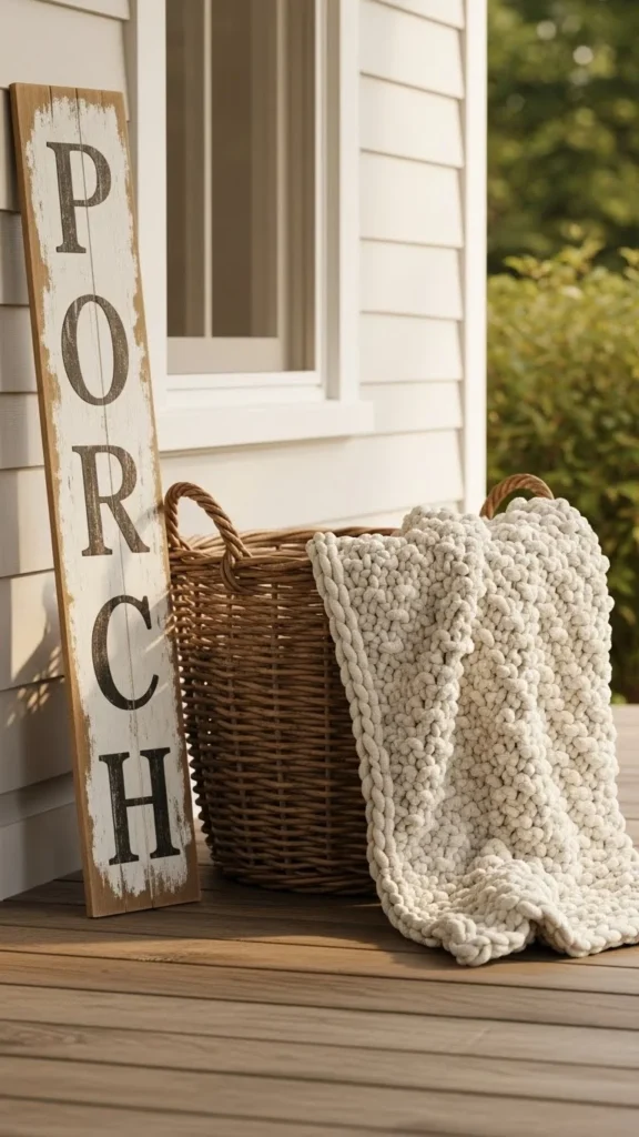 Pairing adds warmth. A simple basket beside the sign makes it feel styled.