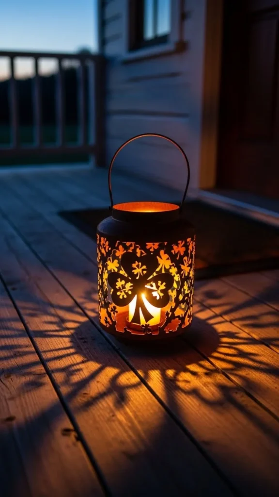 Lanterns with clover cutouts cast gentle shadows. Metal versions work well on porches or hearths. Use LED candles for safety. You can DIY by punching clover shapes into thin metal sheets. Let the metal age naturally. This piece adds interest even when unlit.