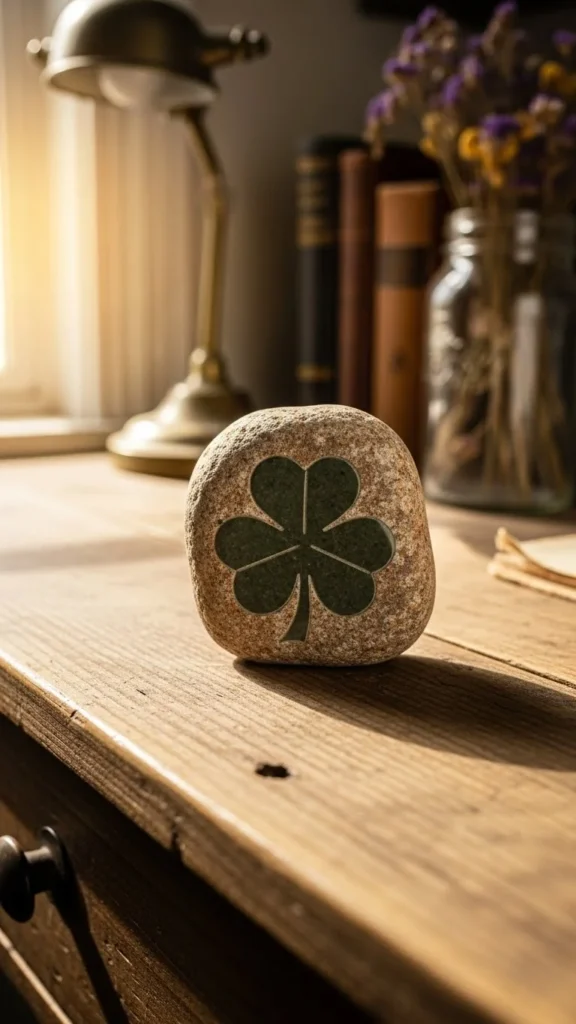 Stone clover paperweights feel grounded and calm. Look for carved or naturally shaped stone. Use it on desks or open shelves. It adds weight without visual clutter. Budget idea: search river stones and carve lightly with simple tools. Even rough shapes work.