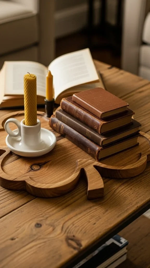 A clover-shaped tray adds function and form. Use it to hold candles, coasters, or remotes. Choose solid wood with visible grain. Avoid glossy finishes. You can make one by cutting plywood and adding a shallow rim. Sand well. Leave raw or wax lightly. This tray works on coffee tables or dressers. Keep styling simple so the shape stands out.