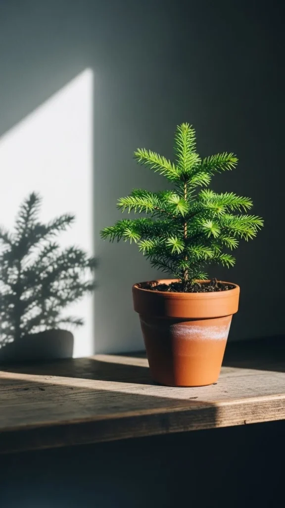 Terracotta pots give earthy warmth. Plant rosemary, thyme, or evergreen sprigs. Place pots in clusters for a natural look. Avoid too many plant types—keep it minimal. Budget-friendly: cuttings from your garden work. Layer with books or vases for added depth.