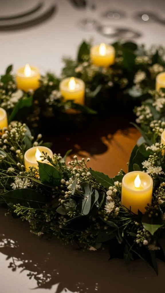 Place LED candles near the wreath, not inside.