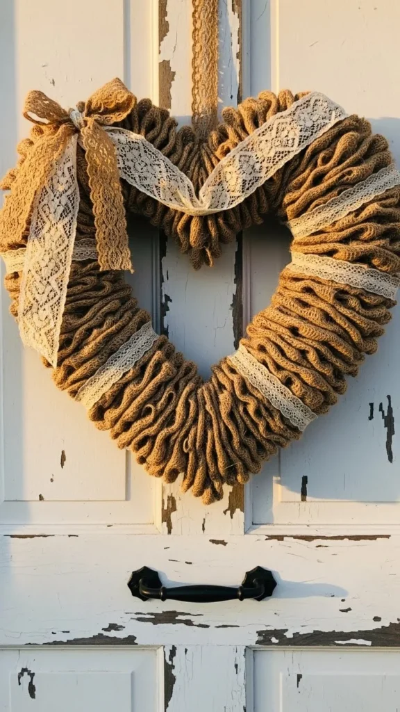 Burlap is affordable and easy to find. Cut strips and tie them around a heart frame. Add lace ribbon for contrast. This mix feels soft yet grounded.